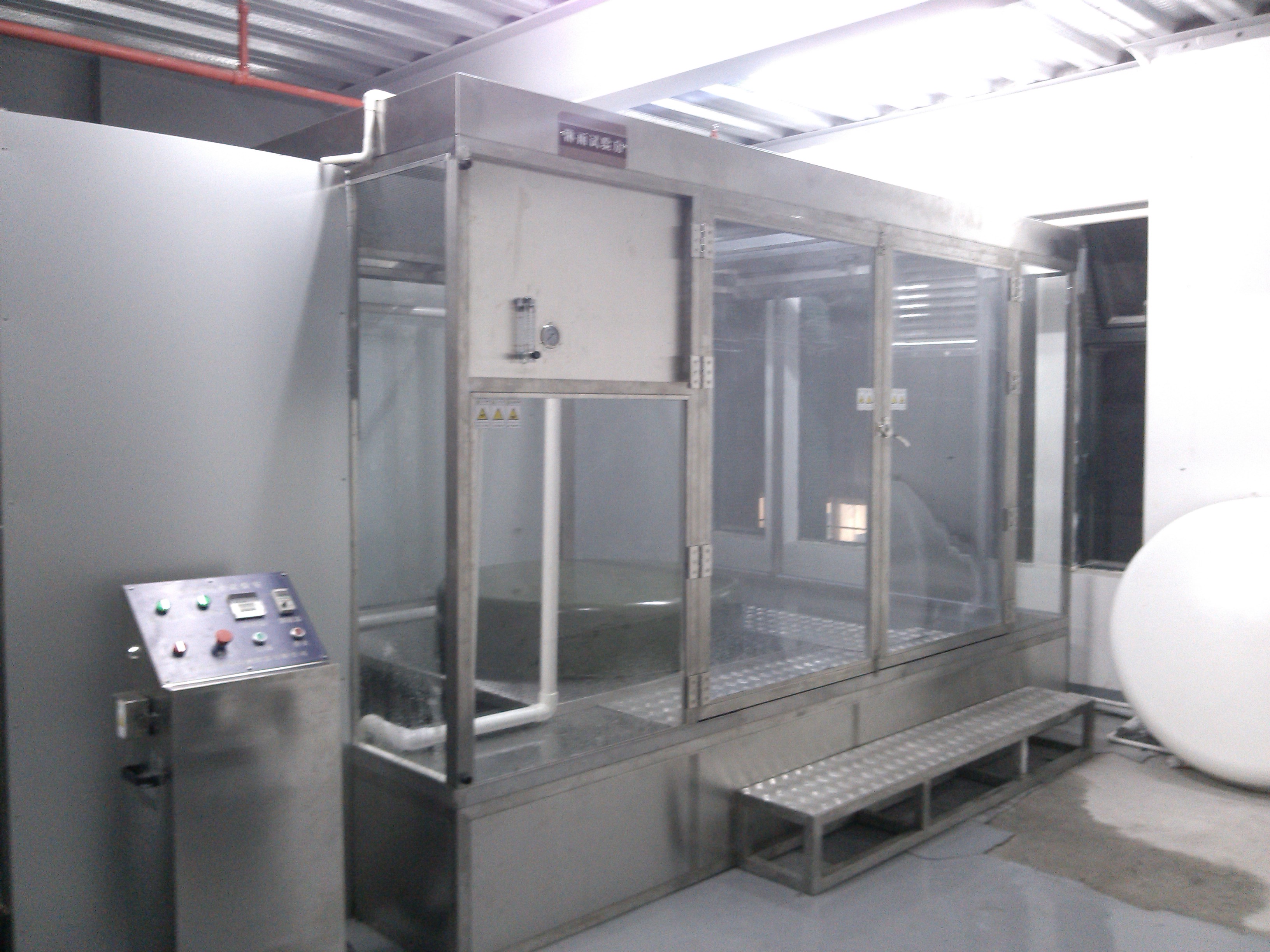2、淋雨強度:前部平均為12±1mm/min,兩側及上、下、后為平均8±1mm/min。